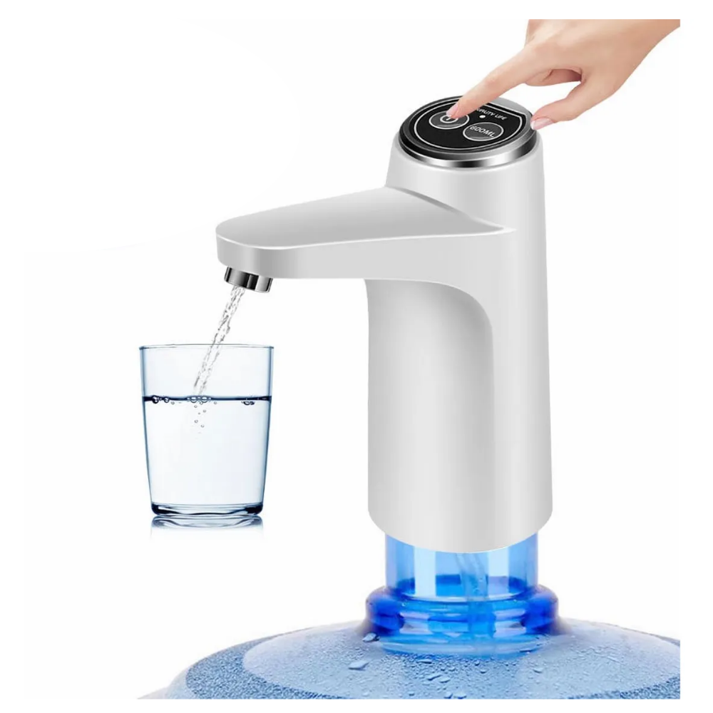 Facilita el consumo de agua diaria con esta bomba dispensadora de agua eléctrica recargable USB para garrafón Diseñada para evitar cargar botellas pesadas, permite servir agua de forma rápida y segura con solo presionar un botón.