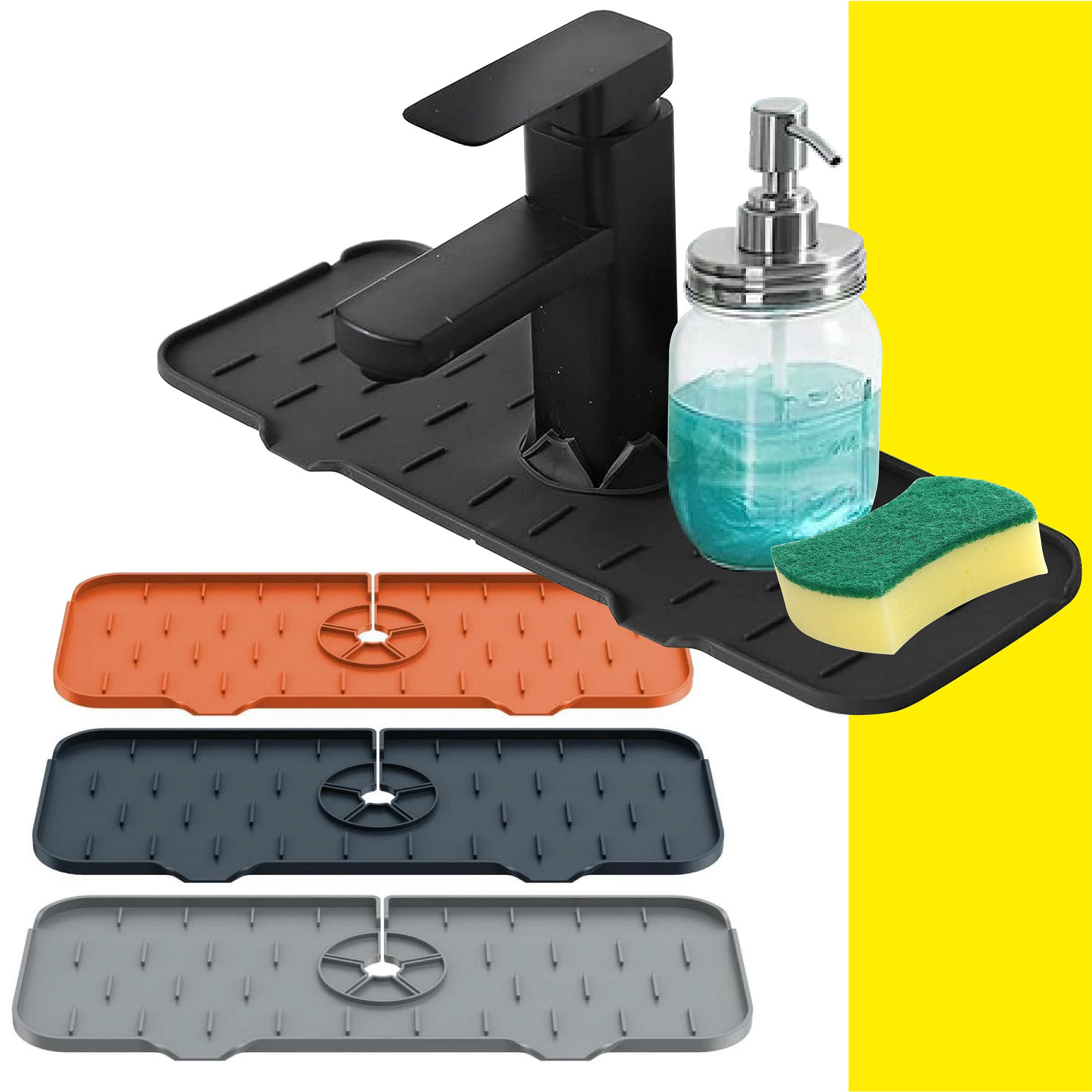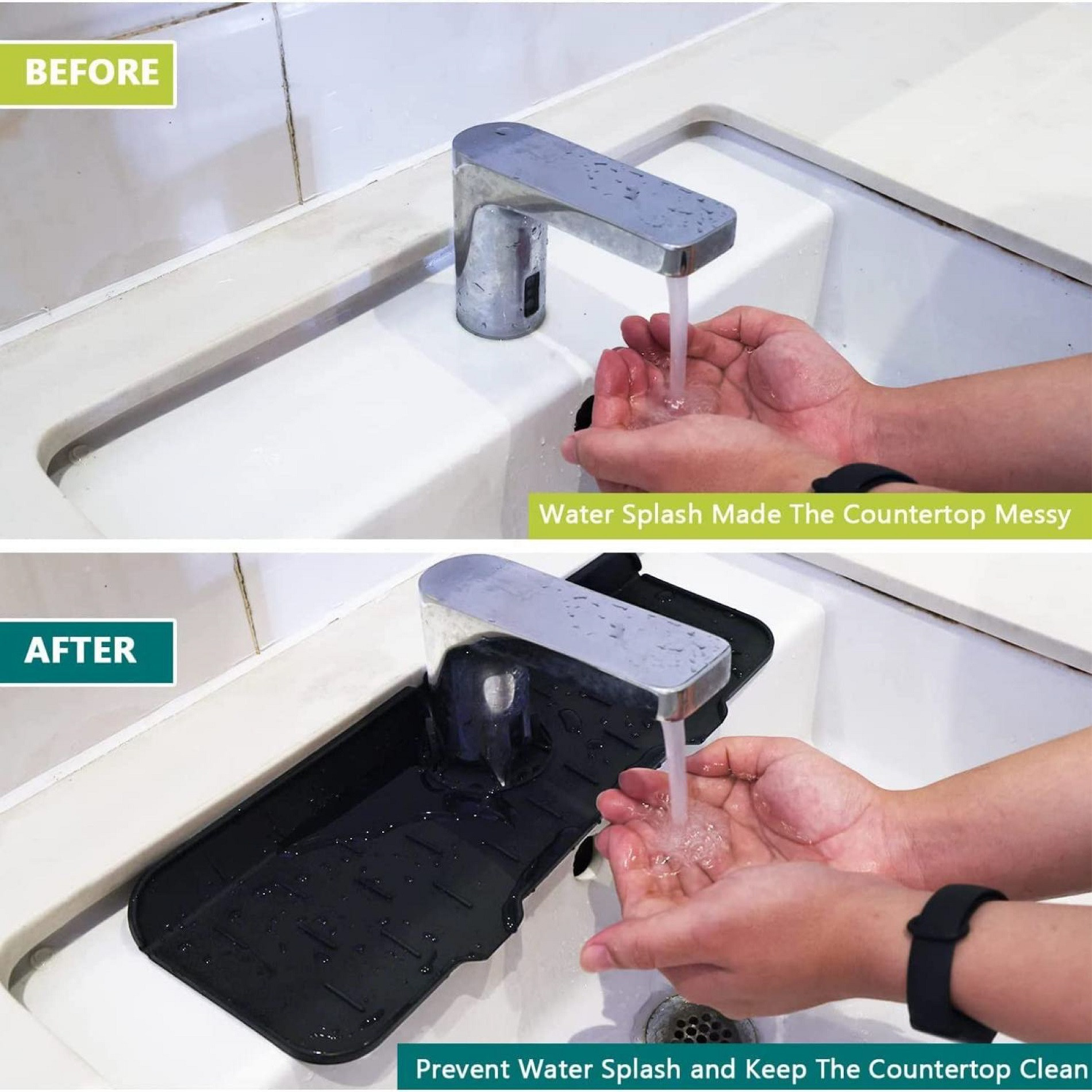 <>Un buen ayudante: la alfombrilla de silicona para fregadero es fácil de instalar, quitar y usar, no solo es una alfombrilla para grifo a prueba de salpicaduras, sino que también puedes poner tu cepillo de dientes, taza, desinfectante de manos y jabón para platos en esta alfombrilla de silicona para fregadero de grifo para organizar tu hogar fácilmente