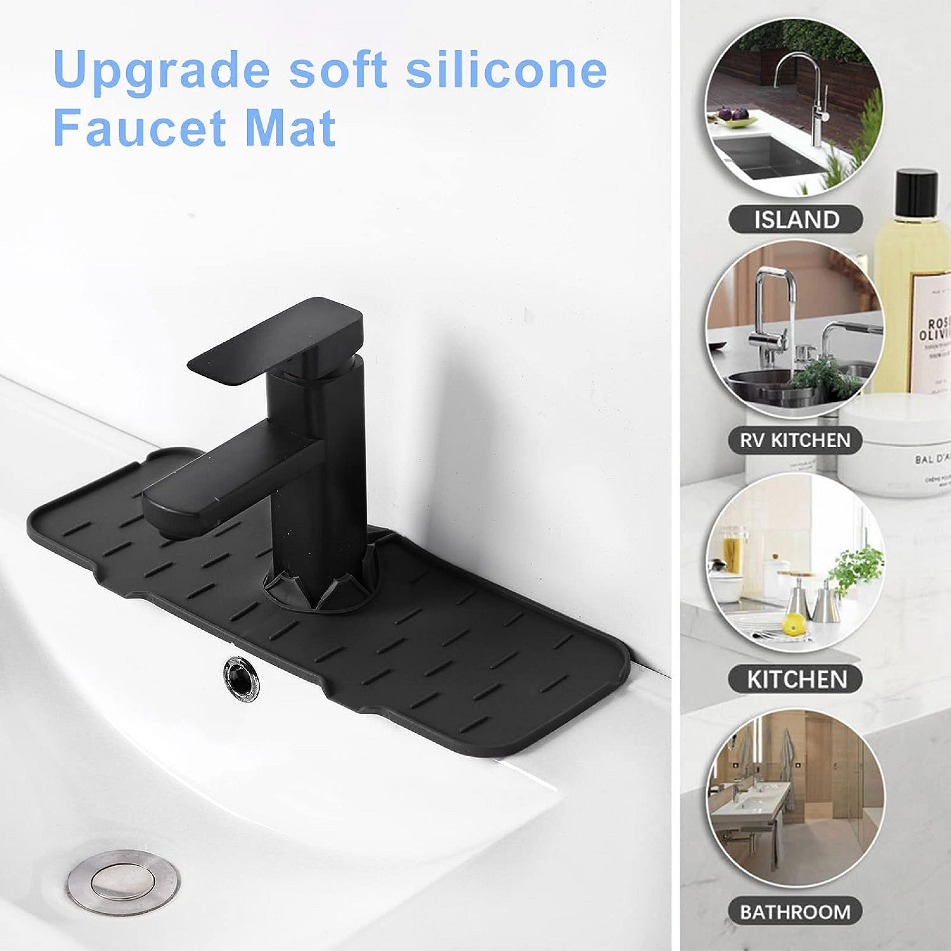 <>Mantén tus encimeras secas: el tapete para fregadero de cocina tiene un diseño envolvente, que se envolverá firmemente en cada lado del grifo, adecuado para la mayoría de los modelos de grifos, para mantener la encimera limpia y seca.
