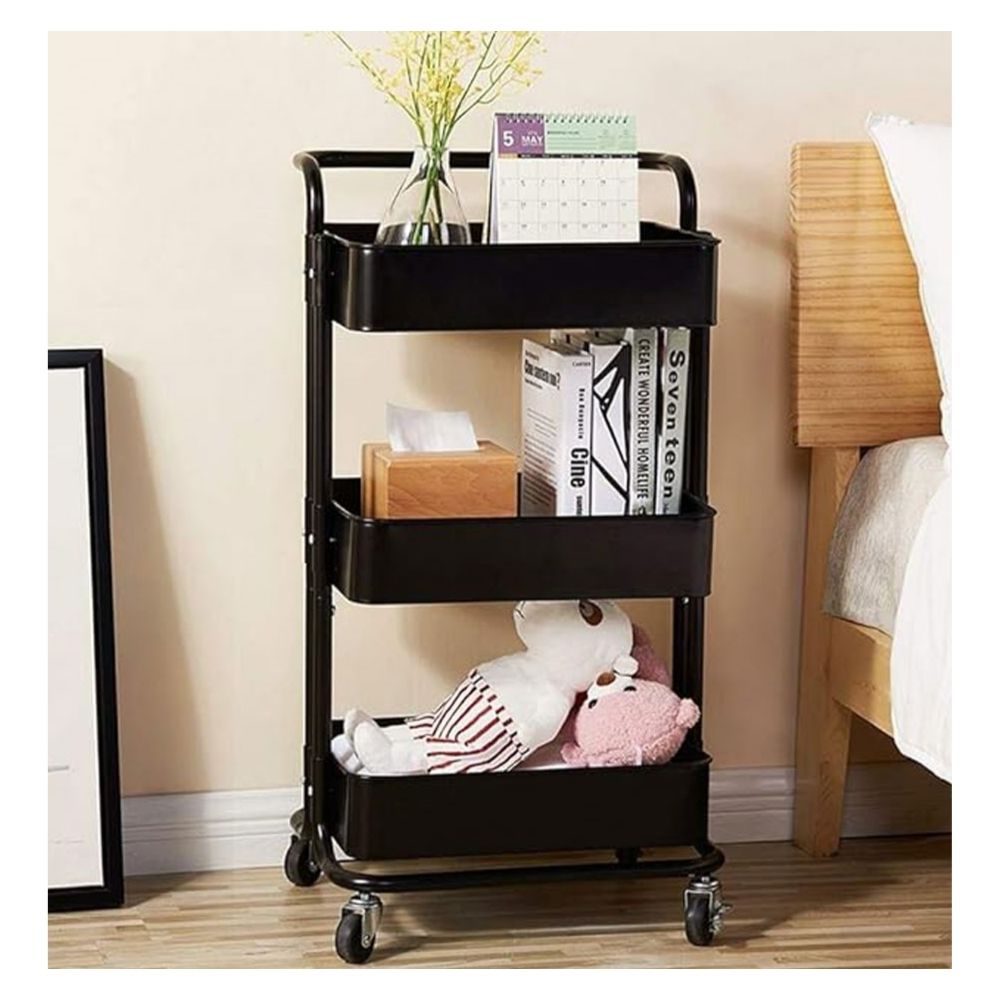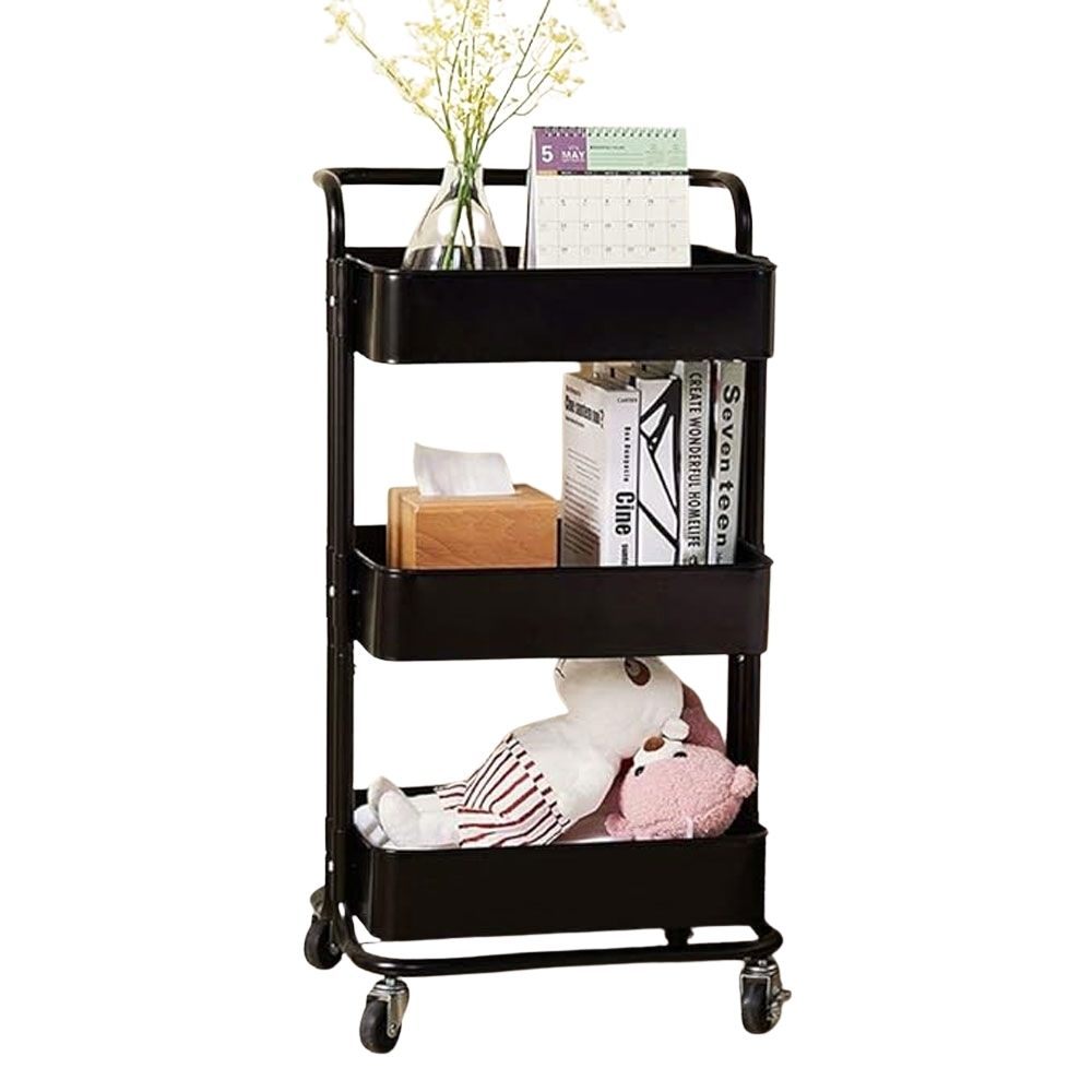 Multifuncional: este organizador de estanterías de 3 niveles se puede utilizar en todas partes; Se puede utilizar como carros de servicios públicos, carros de baño, carros de almacenamiento de cocina, carros de comedor, carros de servicio, estantes de almacenamiento, carros de herramientas y más. Adecuado para cocina, sala de estar, baño y otras escenas.