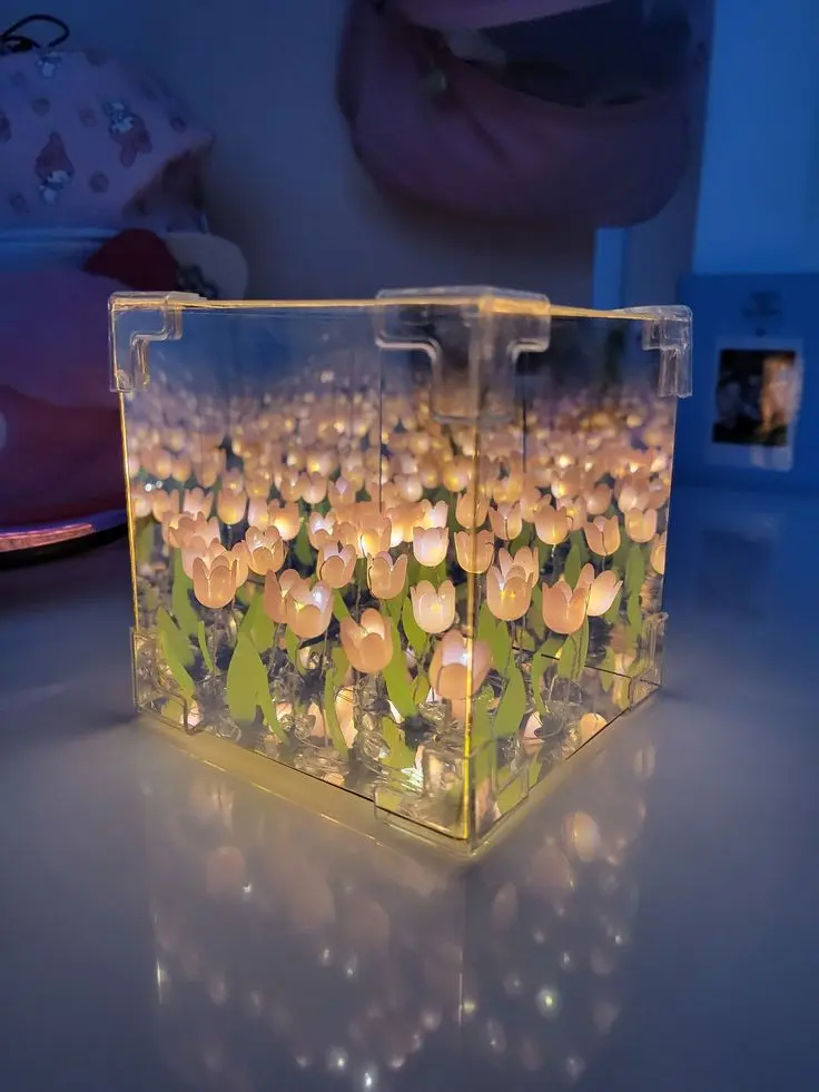 Experiencia de montaje única: Con el kit DIY del Cubo de Rubik, no solo obtienes una hermosa lámpara de noche de tulipanes, sino también la emoción y la satisfacción de montarla tú mismo. Es una experiencia divertida y gratificante que te permite crear algo especial con tus propias manos.